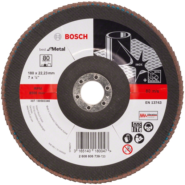 Bosch - X571 Best for Metal - Disco laminar,perfil convexo, 180x22,2 mm, granulación 80