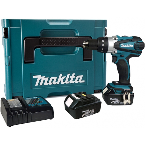 La alta durabilidad está dada por el engranaje de metal y el DHP458RFJ también tiene una luz de trabajo LED.