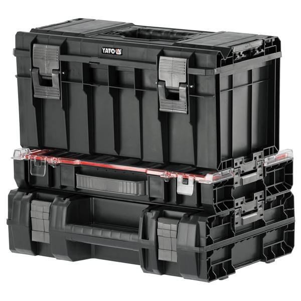 Yato - YT-09163 - Caja de plástico, 241x450x321mm, mango de transporte, sistema de clipaje almacenamiento litera