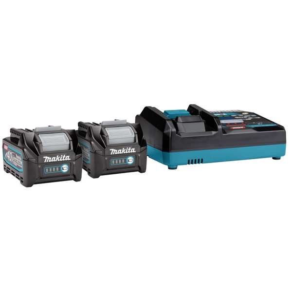 El diseño de las baterías de 40 V se completa con un sistema de carga rápida. El tiempo de carga para una batería de 2.5 Ah es de 28 minutos, mientras que para el de 4.0 Ah es de 45 minutos. Las baterías están equipadas con un indicador LED que muestra el grado de carga. Puede usar un adaptador que le permita cargar máquinas LXT y XGT , un total de más de 300 herramientas.
