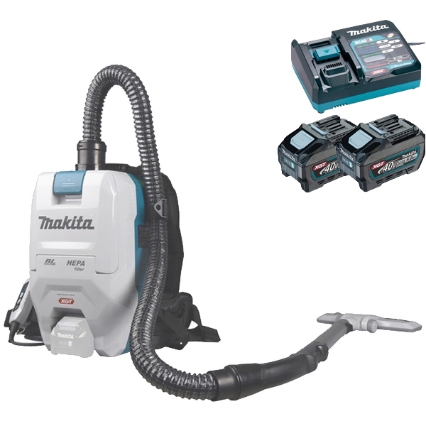 Juego de entrega | 1 x Makita - VC009GZ01 XGT - Aspiradora portátil sin baterías ni cargador, Li-Ion, 40 V, - Ah, 180 mbar 1 x Makita - PSK XGT - Juego de 2 baterías y cargador, Li-Ion, 40 V, 5 Ah, carga rápida |
