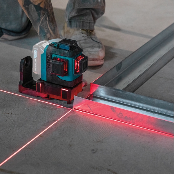 Nivel láser con líneas Makita SK700D con líneas cruzadas horizontales y verticales, para aplicaciones de nivelación, alineación, verticales y angulares.