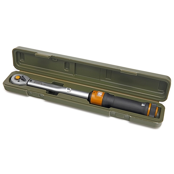 El mango ergonómico permite fijar la llave dinamométrica en la posición central.