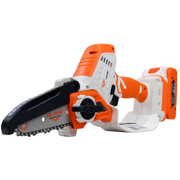 Gracias a la ausencia de cable de alimentación y a la potente y ligera batería, los usuarios pueden cortar madera en cualquier lugar, sin estar limitados por la presencia de una fuente de alimentación. Además, la batería Li-Ion es recargable, lo que hace que el uso de la motosierra telescópica inalámbrica RURIS 1424e sea más económico y cómodo que otros modelos del mercado.