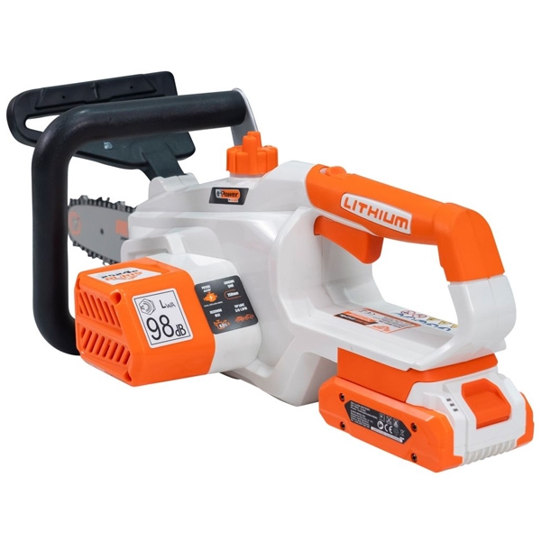 El producto está equipado con un motor eléctrico cepillado y una batería de iones de litio de 20 V con una capacidad de 4 Ah (que le permite proporcionar una potencia total de 80 Wh), lo que ayuda a la herramienta a trabajar con madera más dura y gruesa.