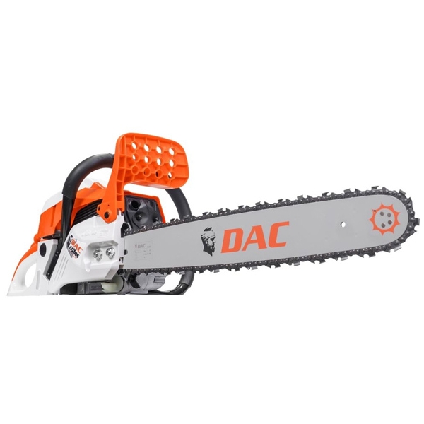La longitud de espada de 500 mm de la motosierra DAC 601RS le ofrece mayor versatilidad y eficiencia al cortar diferentes tipos de madera. Esta longitud permite cortar troncos y ramas más gruesas de forma eficiente, a la vez que permite realizar cortes más profundos en una sola pasada.