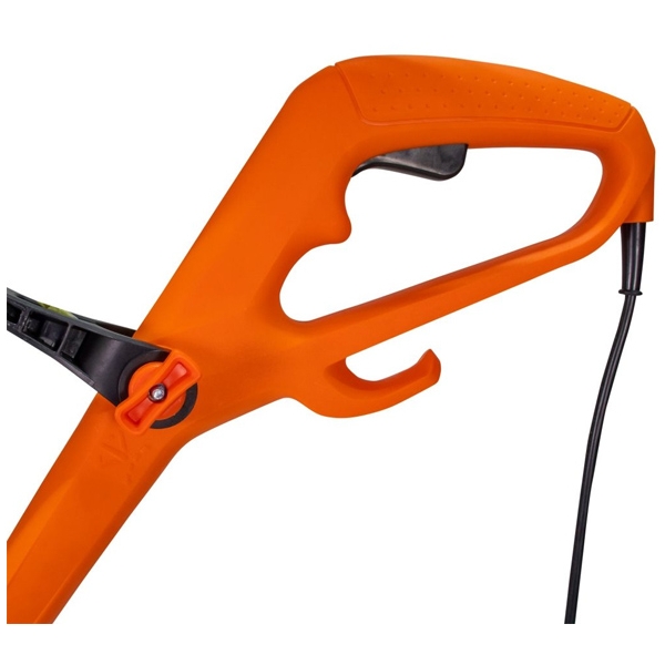 La recortadora eléctrica RURIS TE400 está equipada con un motor de 400W con una velocidad de rotación de 14.000 rpm , que permite un corte de césped rápido y limpio.