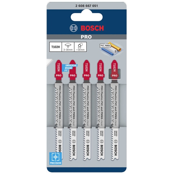 Bosch - PRO Plastics PVC and PMMA clean T102H - Juego de hojas de sierra pendular, varilla con un umbral de sujeción (T), 100 mm, plástico, corte re