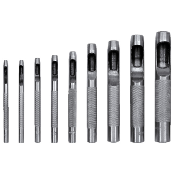 Cuando se golpea con un martillo, el borde afilado aplicado al material corta el agujero en él.