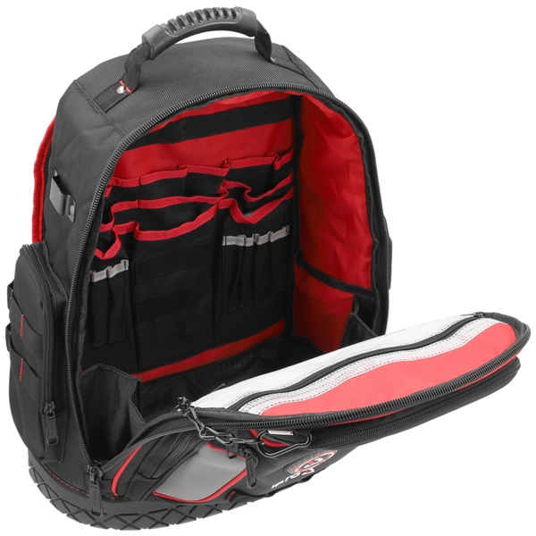 Bolsa práctica y muy resistente, fabricada en nailon de alta calidad. Perfecta para transportar las herramientas necesarias en el trabajo. Sus numerosos bolsillos adicionales permiten organizar y mantener el orden en las herramientas y accesorios, además de proteger equipos valiosos, como la cartera, el teléfono y los documentos, en un compartimento cerrado.