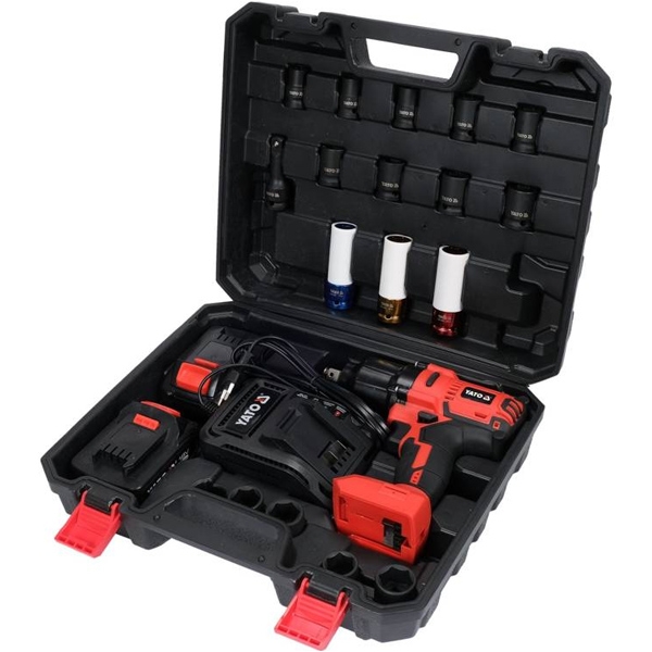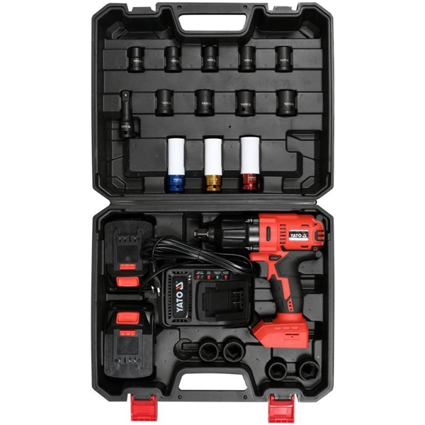 Juego de pistola de impacto de 1/2 pulgada, 700 Nm, 18 V, tubos CrMo, 2 baterías de 3 Ah y cargador.
